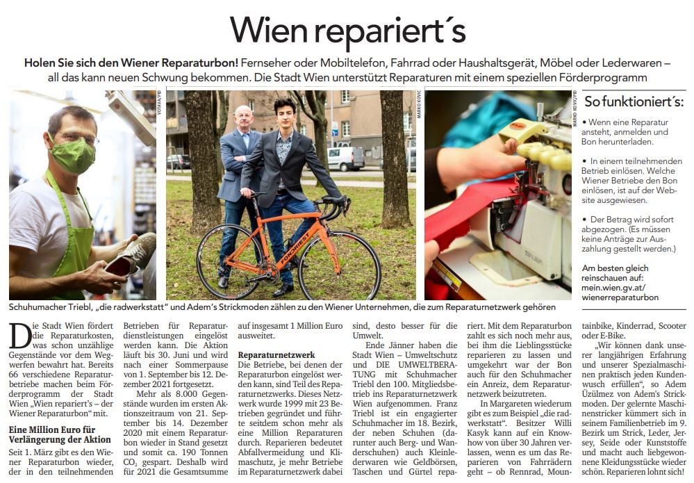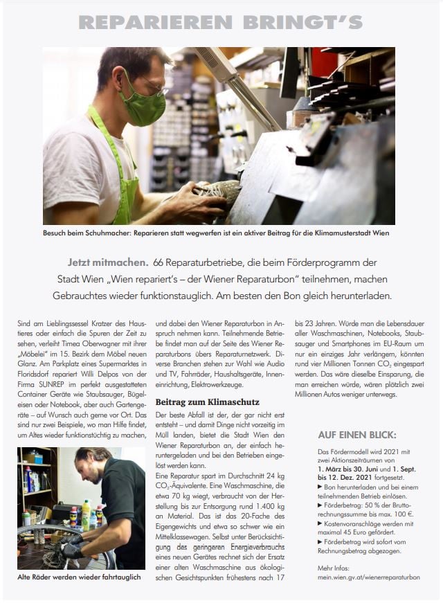 Wiener Reparaturbon 2021 ausgeweitet
