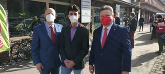 Bürgermeister Michael Ludwig und Klimastadtrat Jürgen Czernohorszky zu Besuch in unserer Radwerkstatt.